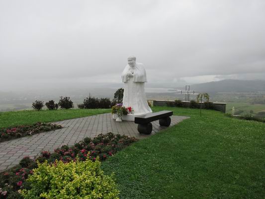 Socha Ježíše Krista a Jana Pavla II u obce Klin