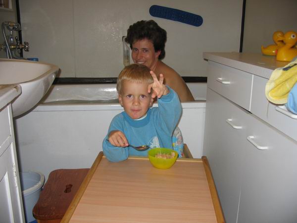 Jsme chudá rodina. Máme malý byt. Koupat se musíme v jídelně (nebo jíst v koupelně?).
