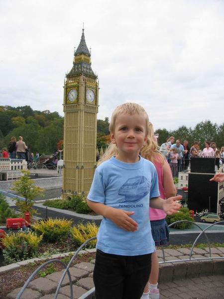 Já a Big Ben. Vlevo skutečný, vpravo ve windsorském Legolandu.