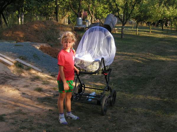 Já (v kočárku, kde jinde) a sestřenice Terezka.